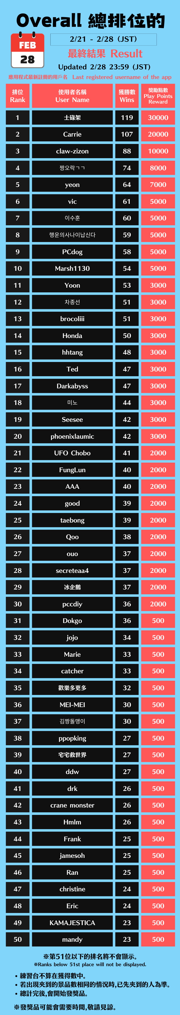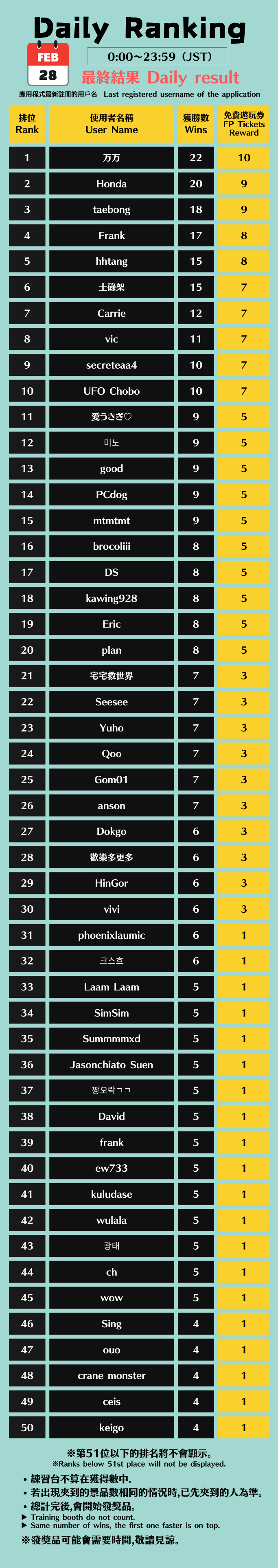 排行榜 - Leaderboard